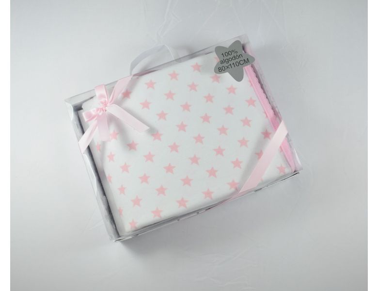 Arrullo 100% algodón. De color rosa y blanco con estrellas. Midas 80x110 cm. Marca Duffi.