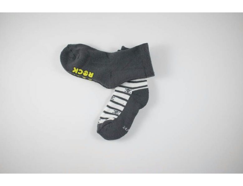 Pack de calcetin y antideslizante. El calcetín es de color gris/blanco a rallas y el antideslizante color gris. Composición: 80% algodón,18% poliester,2% elastano. Marca Twinday.