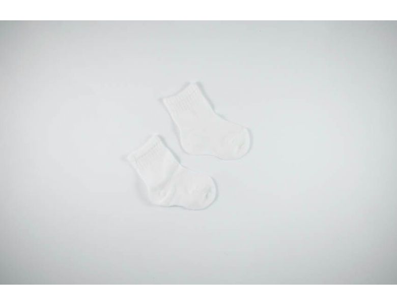 Calcetin bebe con un tacto muy suave para la piel del bebe. Color blanco y liso. Composición: 85% algodón, 15% poliamida. Marca BABIKÍ