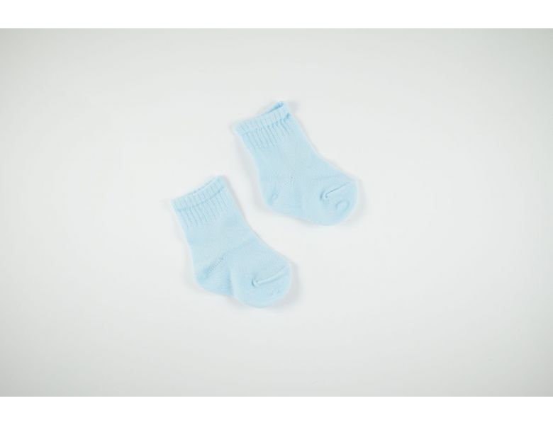 Calcetin bebe con un tacto muy suave para la piel del bebe. Color azul y liso. Composición: 85% algodón, 15% poliamida. Marca BABIKÍ