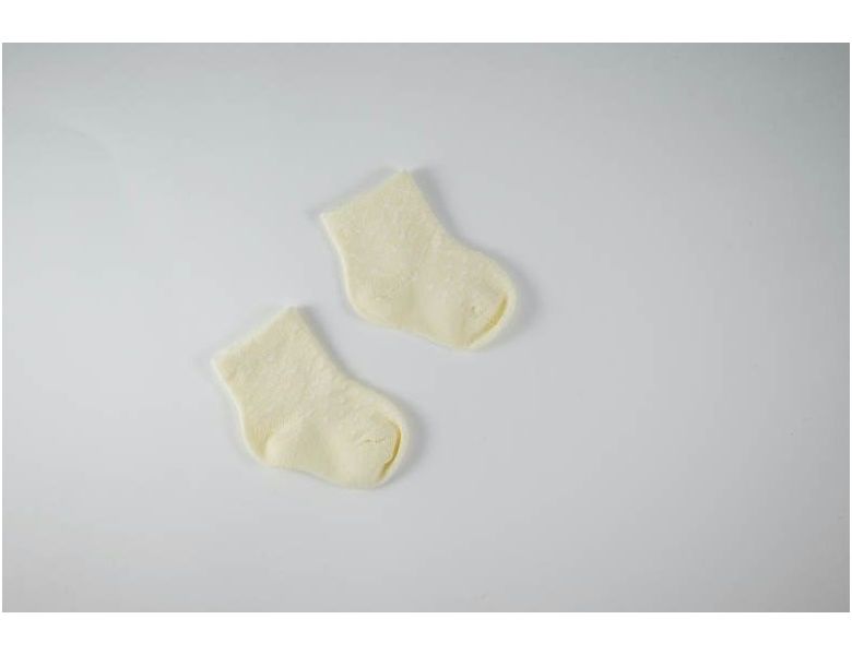 Calcetin bebe color marfil calado. Recién nacido. No aprieta. Muy suave. Composición: 75 acrílico,23% poliamida,2% elastomero. Marca BABIKÍ