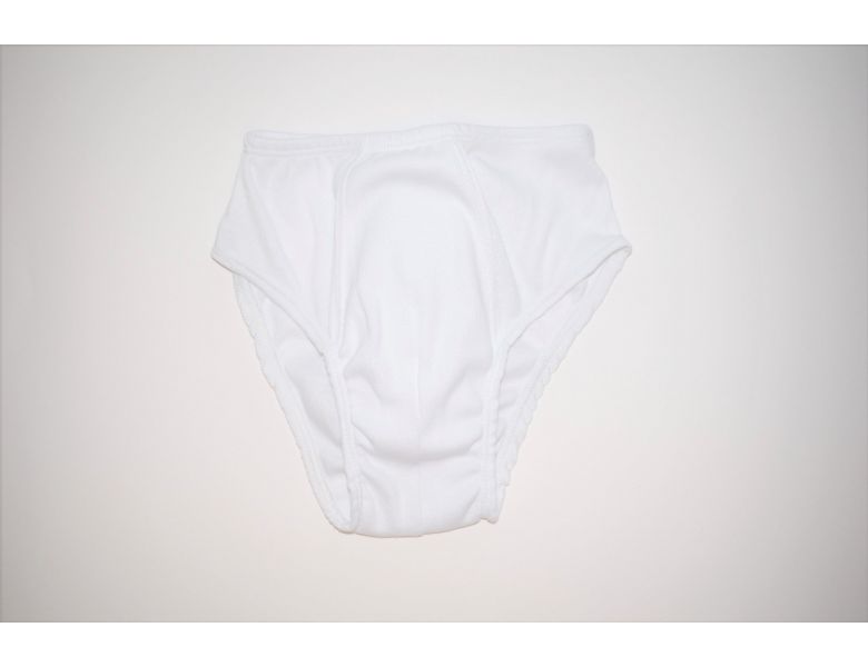 Es un tejido muy suave y con su goma elástica fina, hace que se adapte perfectamente a la cintura. 100% algodón. Pack de 3 unidades en color blanco. Marca BABIKÍ.