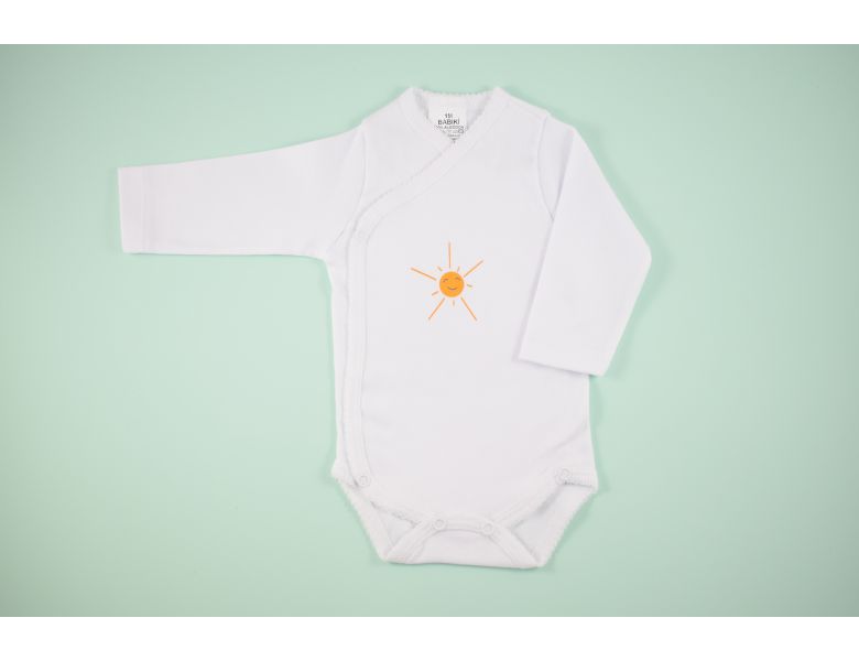 Body 5 broches de manga larga. 100% algodón. Color blanco y con un dibujito de un sol.
