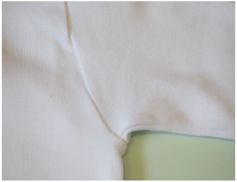 Tiene un pequeño defecto que es como un deshilado del mismo tejido en la parte delantera superior.