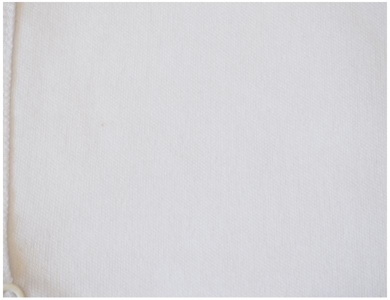 Body sin mangas calada con cuello de pico. Abertura por la parte delantera. 100% algodón. El defecto que tiene es que el tejido es calado, es decir, con dibujos y se ha añadido un dibujo en el centro. Tallas de 1,3,6 meses. Marca BABIKÍ.