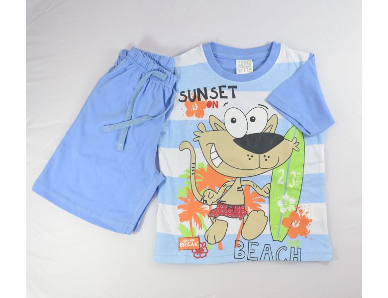 Pijama niño de manga corta. Pijama de 2 piezas con pantalón corto. Color azul con dibujo de un perrito. 100% algodón. Marca Tobogan.